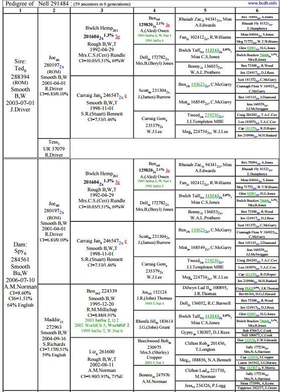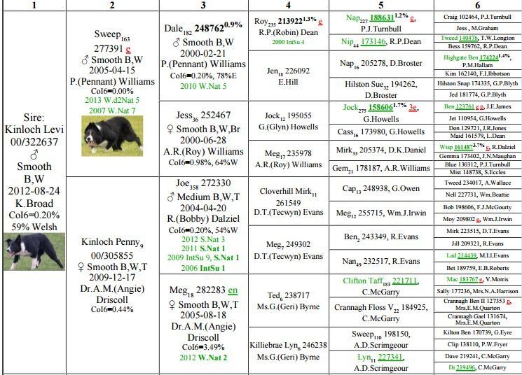 Sire: Kinloch Levi (Dr. A.M. Driscoll / K. Broad) ISDS 32263